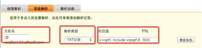 3.cname記錄完成后,再選擇解析類型為MX記錄,在主機名處輸入@,對應值處輸入mail,優先級默認10,如下界面: