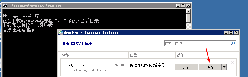 • 下載成功后雙擊執行腳本安裝必要的環境,并根據腳本提示將wget.exe保存到腳本同級目錄。