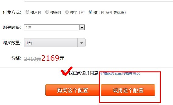 選擇好要試用的配置 然后下單 試用這個(gè)配置